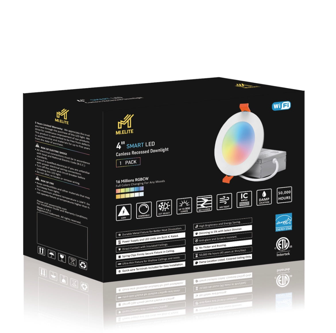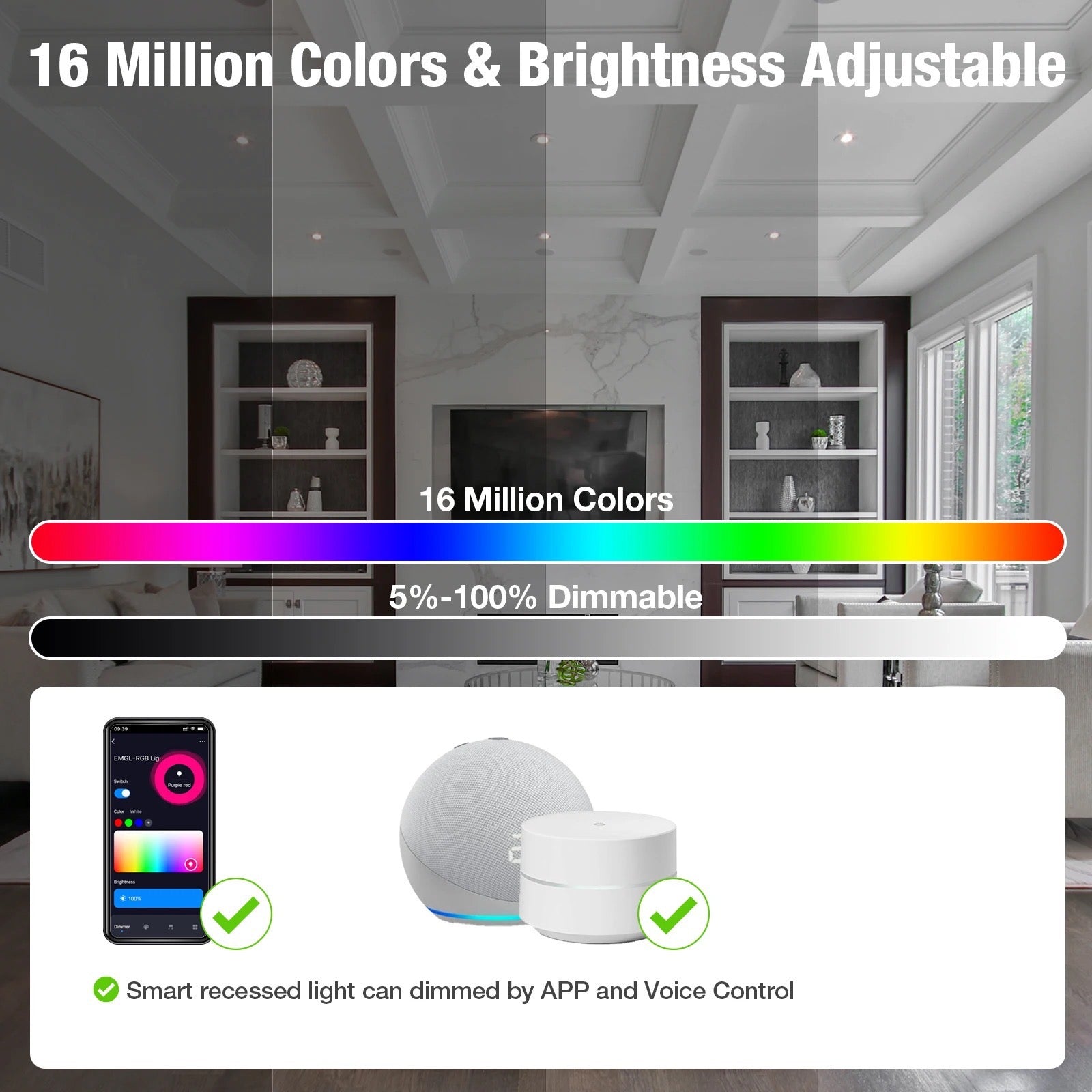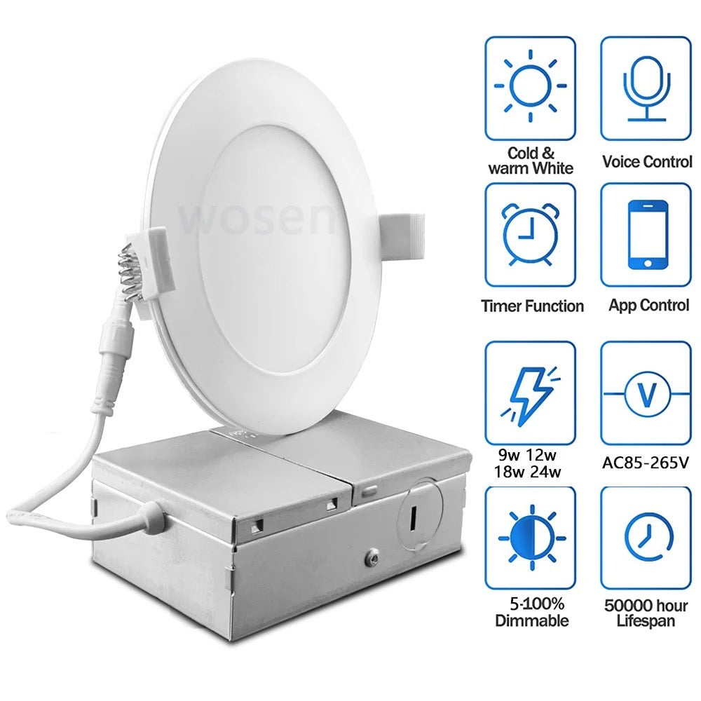 4inch round Smart Wifi LED Recessed Lights,RGBCW Color Changing Recessed Lighting,Compatible with Alexa and Google Home Assistant,No Hub Required,10W 2700K-6500K,CRI90+ WET
